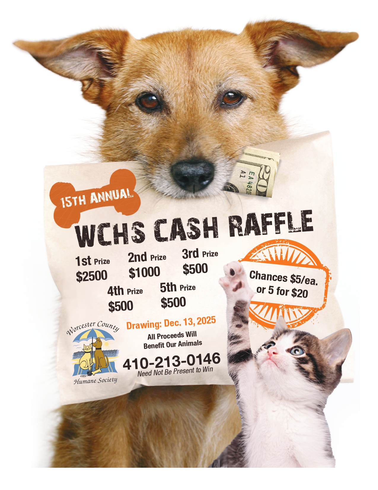 Join Us for the 14th Annual WCHS Cash Raffle   Chances are $5/each or 5 for $20. The drawing will be held on December 13th, 2025. 1st Prize - $2,500 2nd Prize - $1,000 3rd Prize - $500 4th Prize - $500 5th Prize - $500 All proceed with benefit our animals. You do not […]
